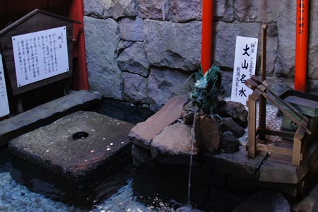 男坂・女坂分岐点(上)から阿夫利神社下社への石段を上る |