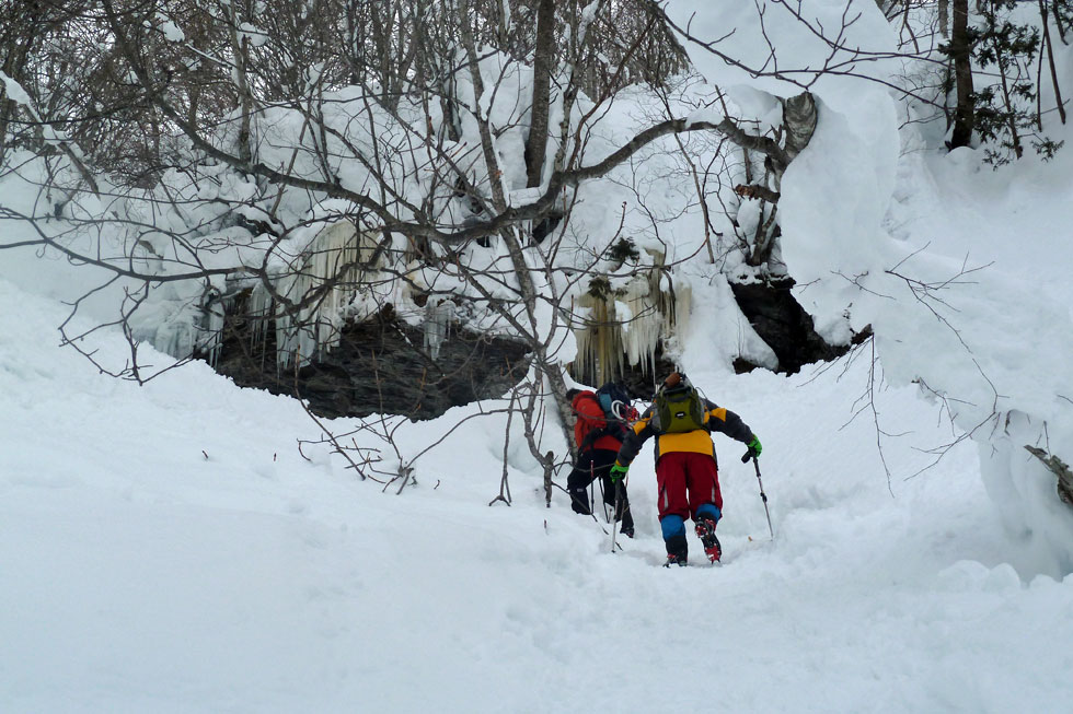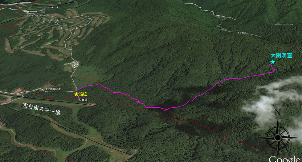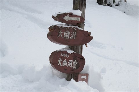 大幽洞窟発 9:19 ~ 枯れた大木 9:25-32 ~ 大幽沢&洞窟入り口指導標 9:48