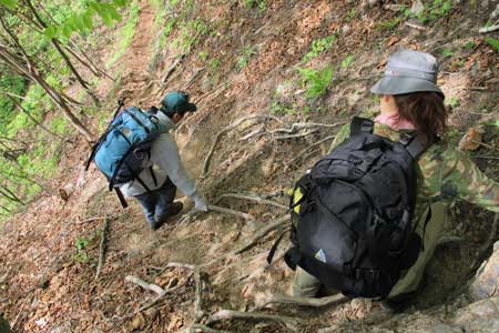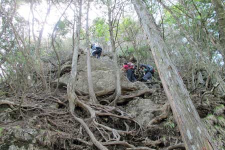 | 上の写真・岩場TOPで撮影 | 登山者が多いと根っ子道になってしまう | |||