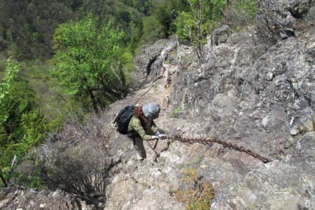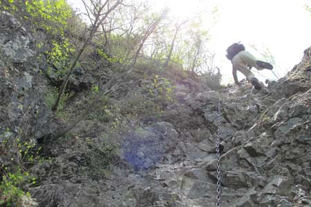 | ↑ 日向大谷へは両神山岩頭部の南側のクサリ場を下る ↑ | ||||