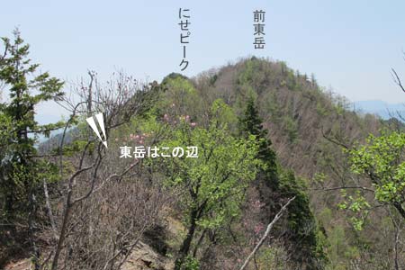 | 西岳 1613M | 東岳・両神山方面 鞍部まで降りて手前ピークの東岳まで登り返す |