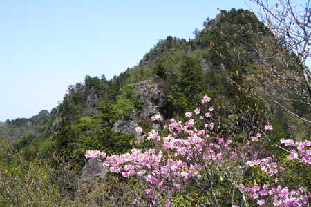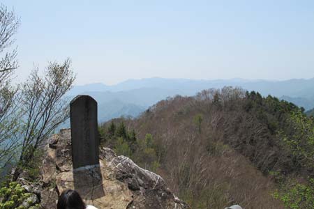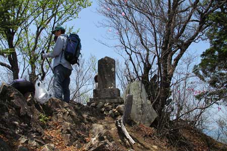 | 山頂手前の岩稜部に建立された石碑 | 山頂手前の岩稜部は展望良 | |||