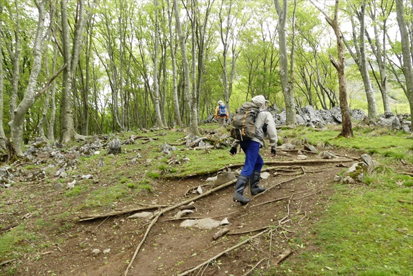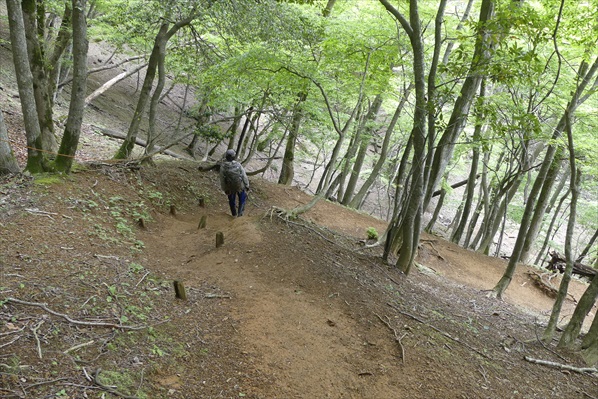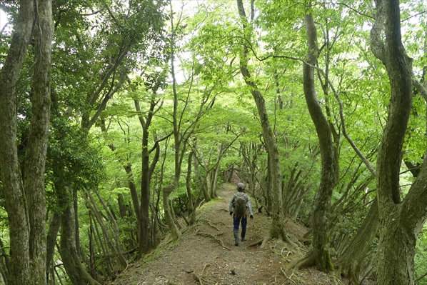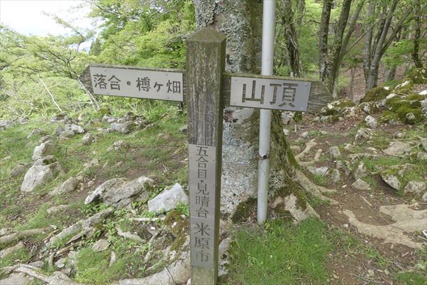 | 新緑が眩い | 二合目・汗拭峠(榑ヶ畑登山口分岐点) | |||