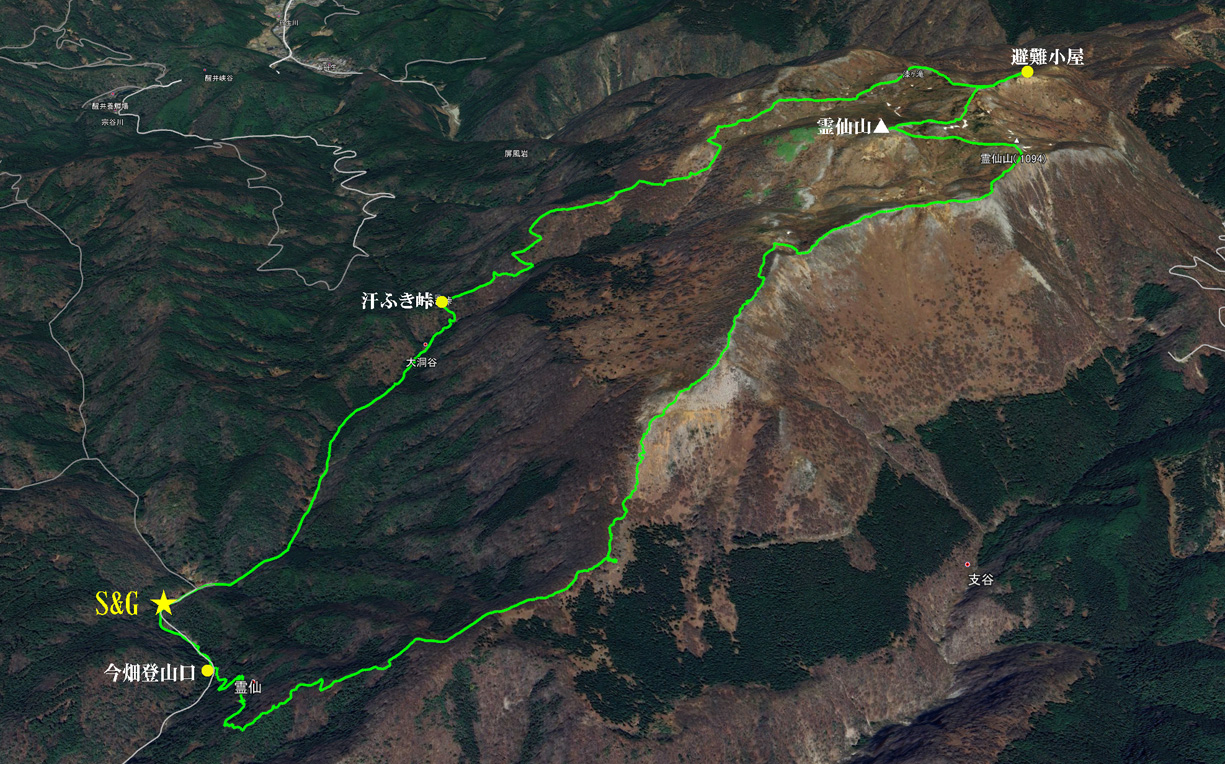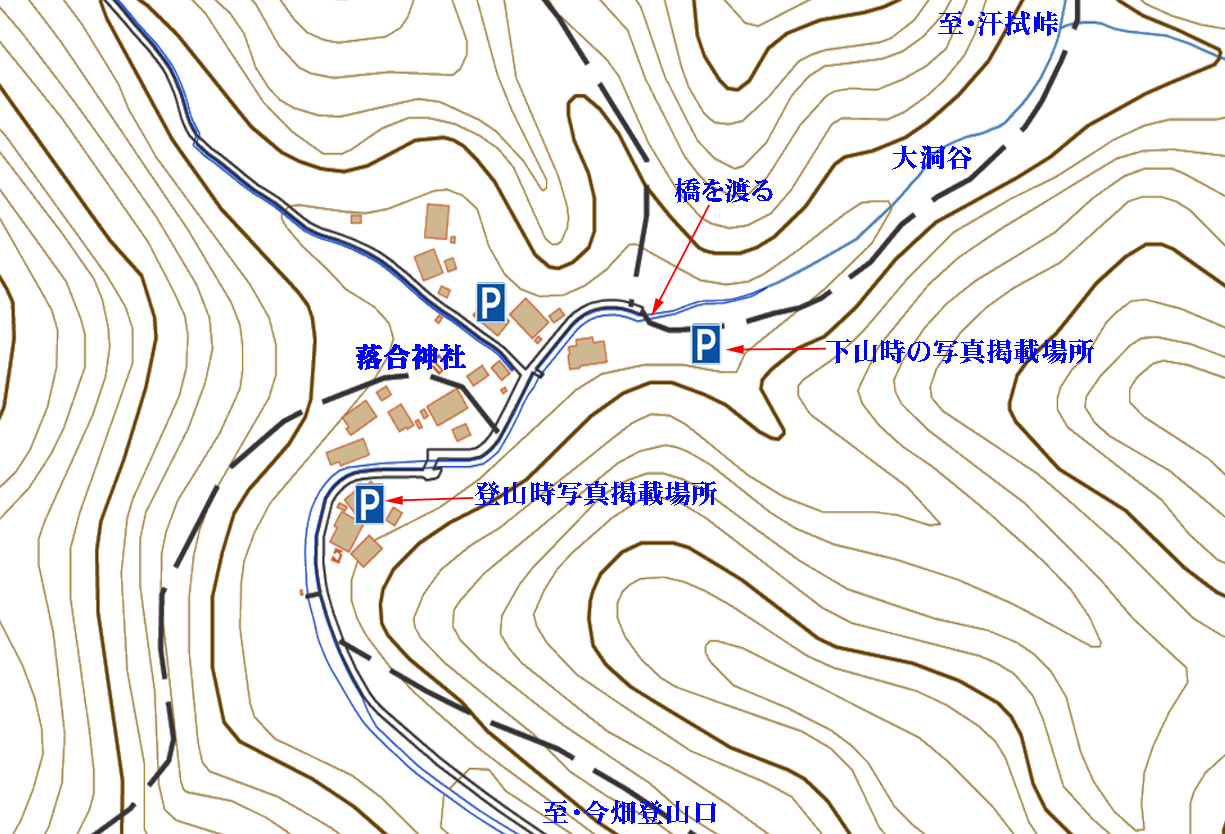 | 下山口駐車場MAP記載あり | 落合地籍に下山 | |||