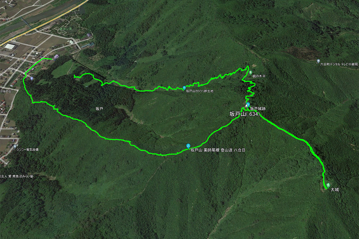 | 坂戸山鳥瞰図 ※坂戸城跡でGPS停止 |