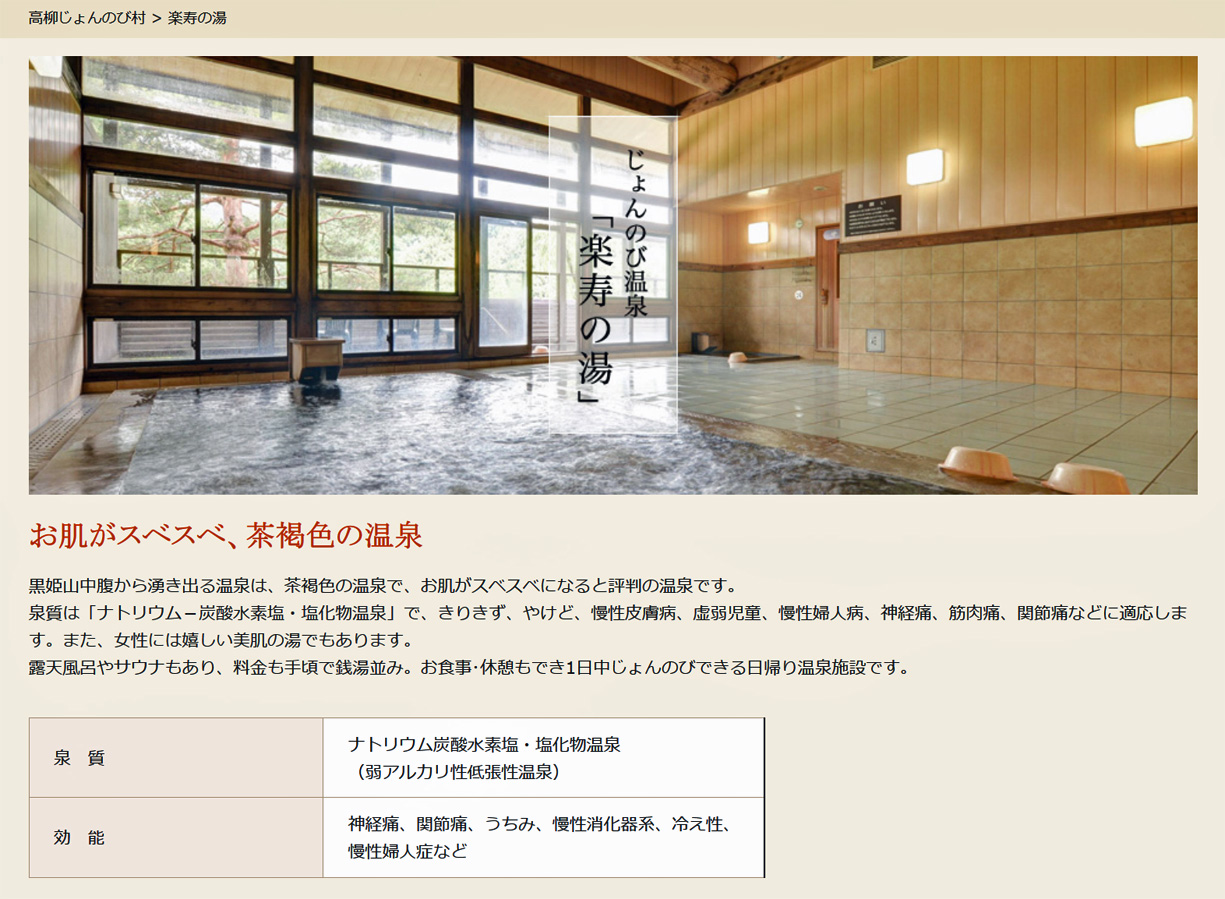 | 道の駅「越後高柳じょんのび村」楽寿の湯 | ||||