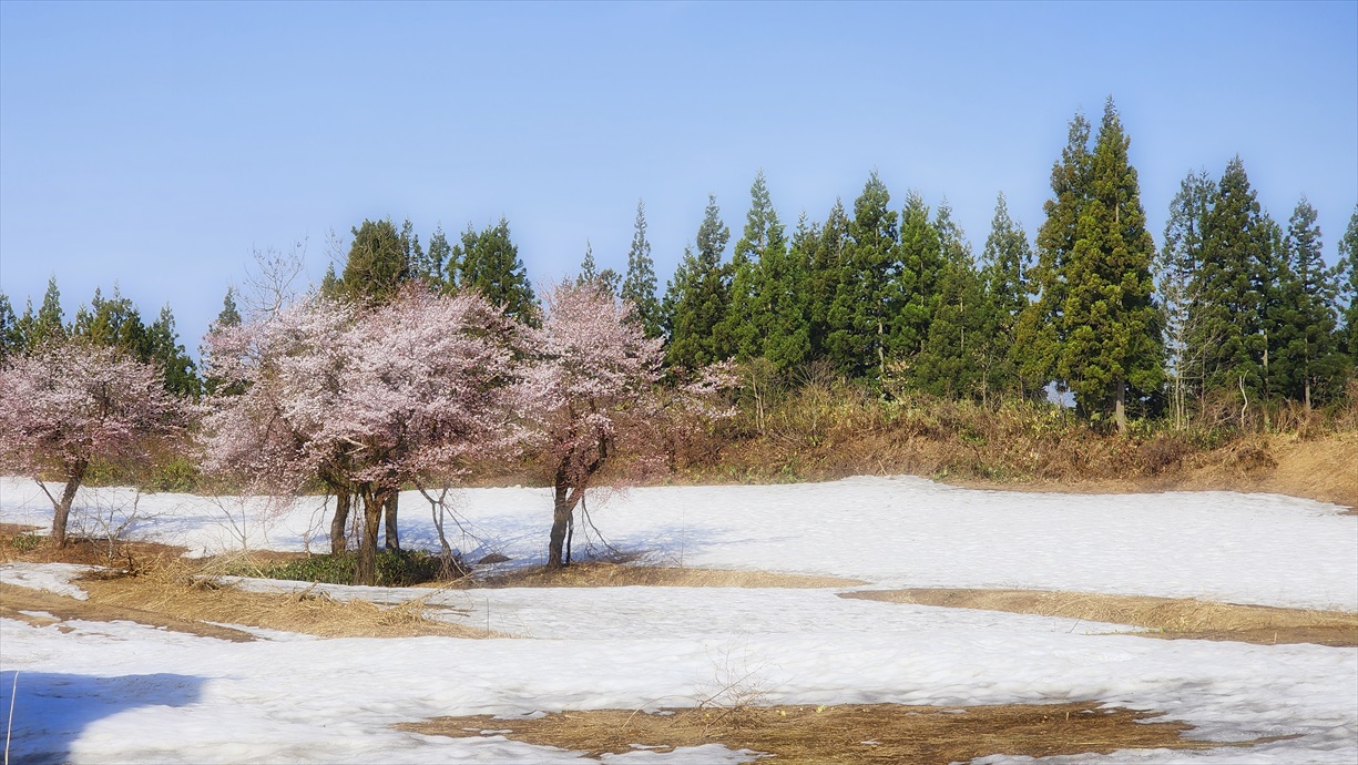 2024.04.15 MON 新潟県魚沼市 福山峠の雪上桜 数年前、FB友の斉藤さんにこの場所を教えていただきました(^O^)v |