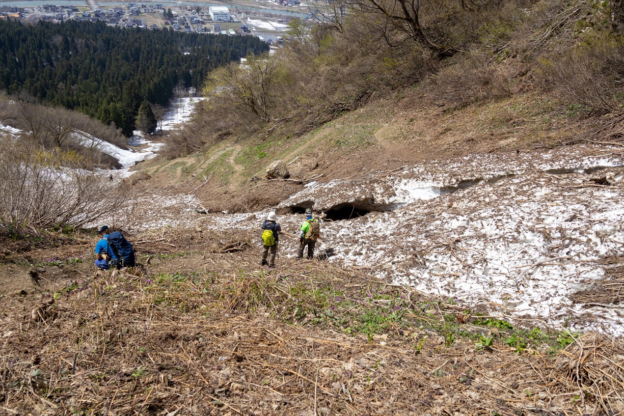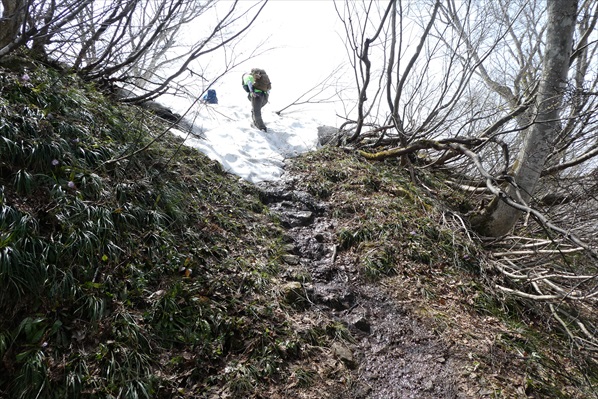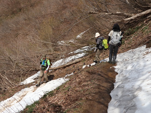 | この雪渓(残雪)直下は沢が流れているので踏み抜き陥没注意です | ||||