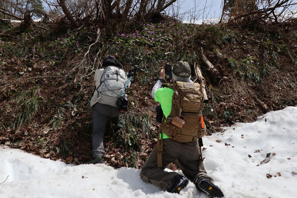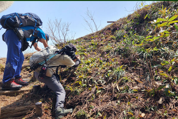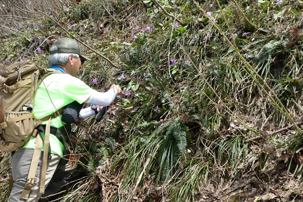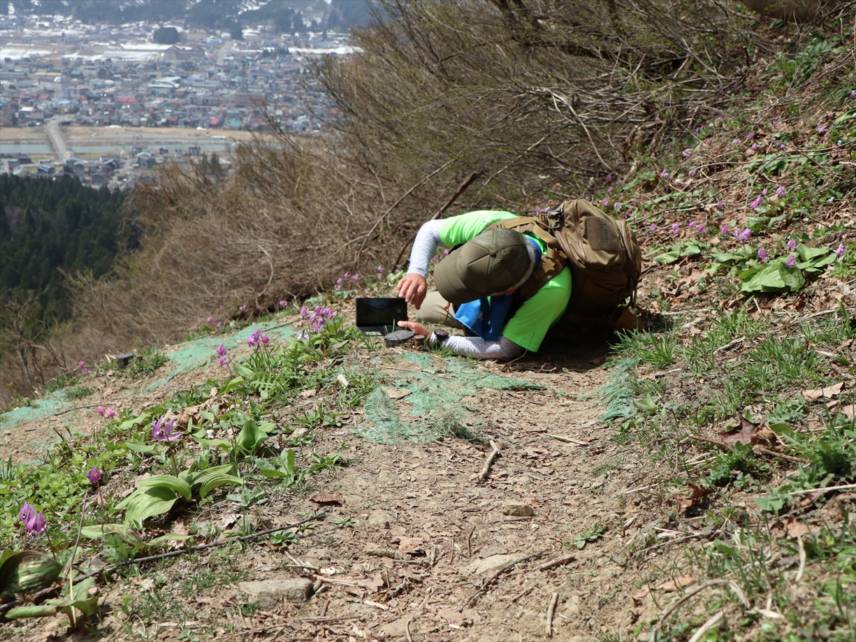 | 桃ノ木平 普段は立ち入れないカタクリ群生地上を歩いています |
