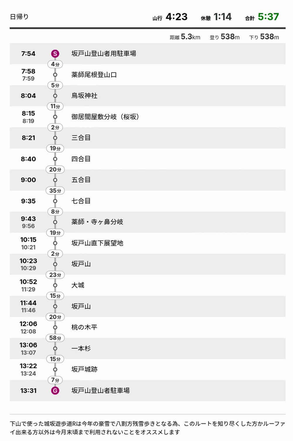 | 《坂戸山コースタイム他》 写真撮影時間20分~100分含む |