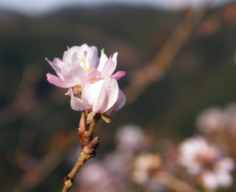| 蝋梅(2月)見学で訪れた時に冬桜のなごり花があちらこちらで咲いているを見て 今回の訪問とあいなりました。 |