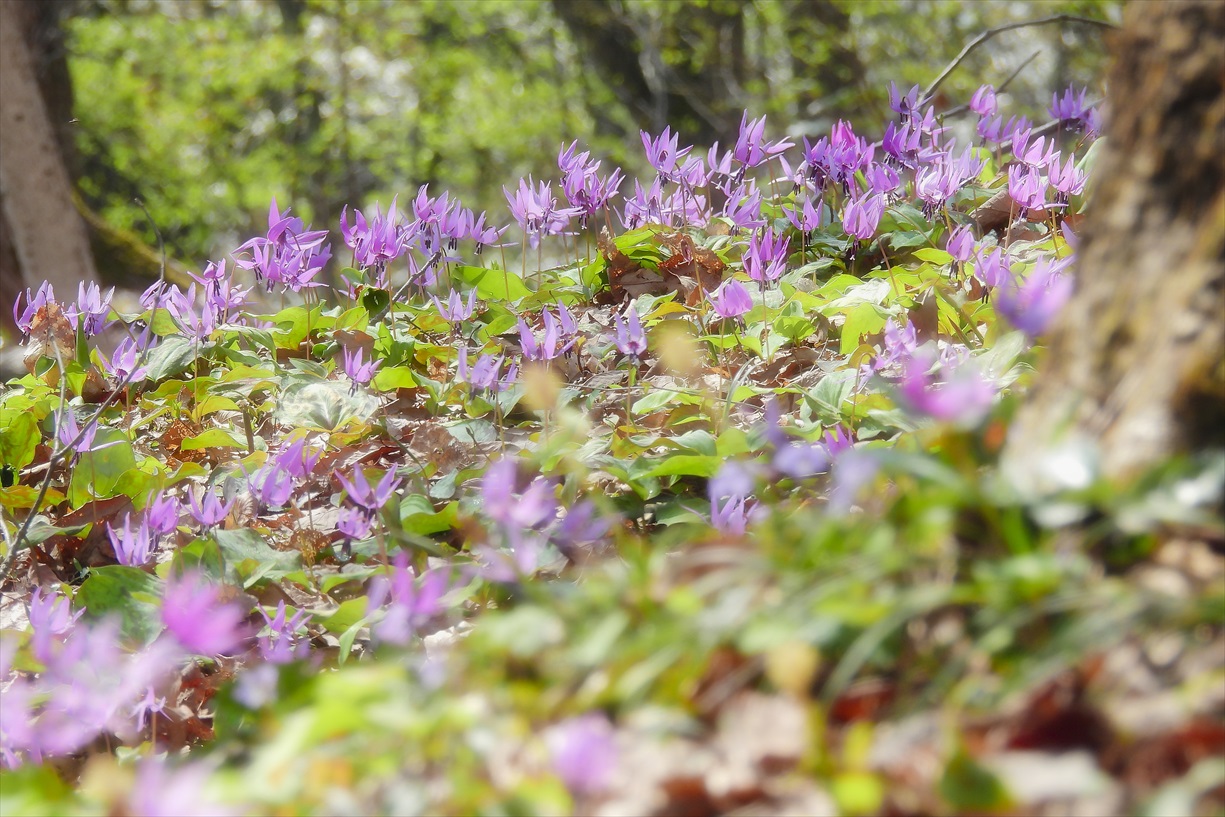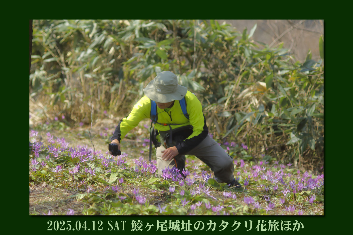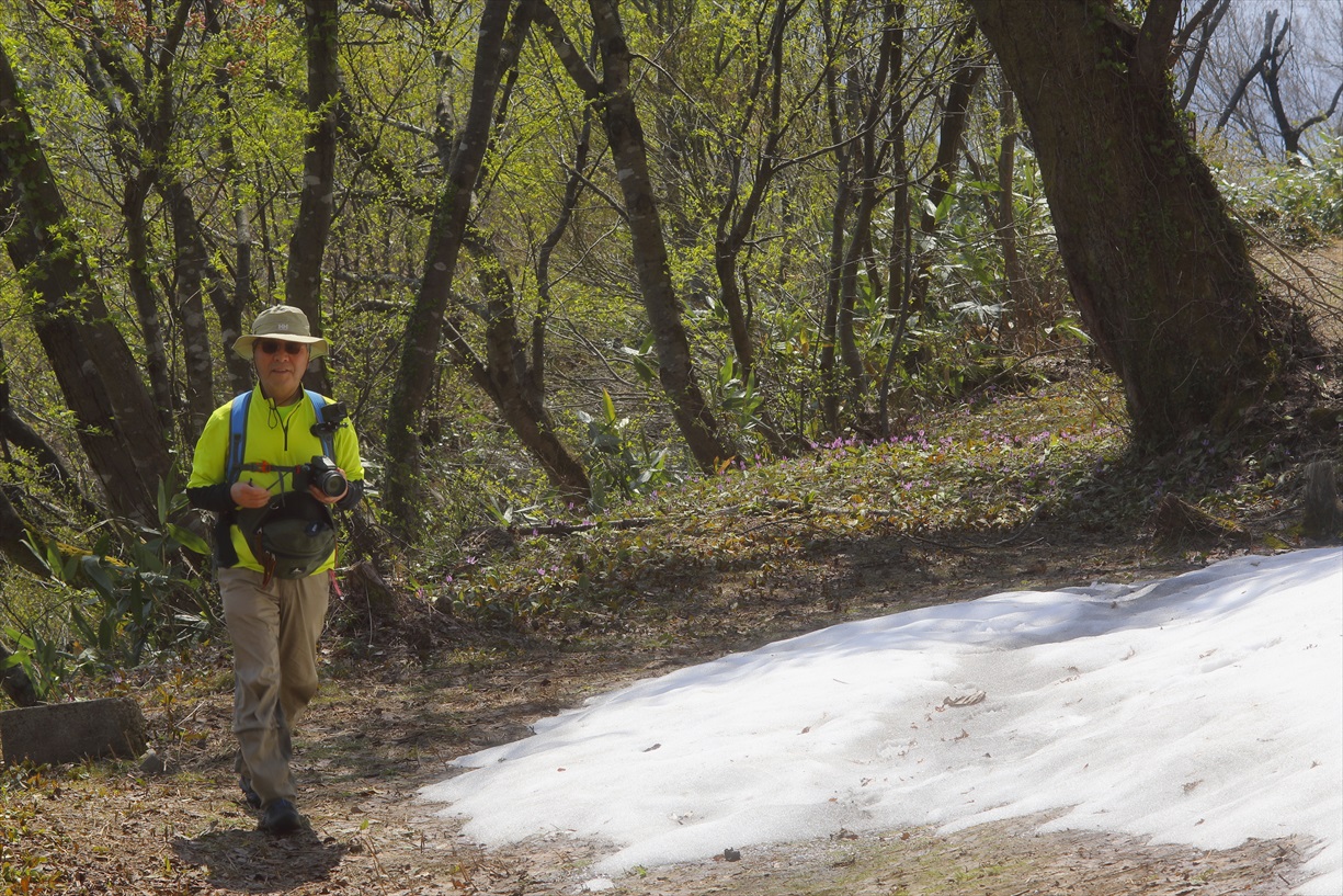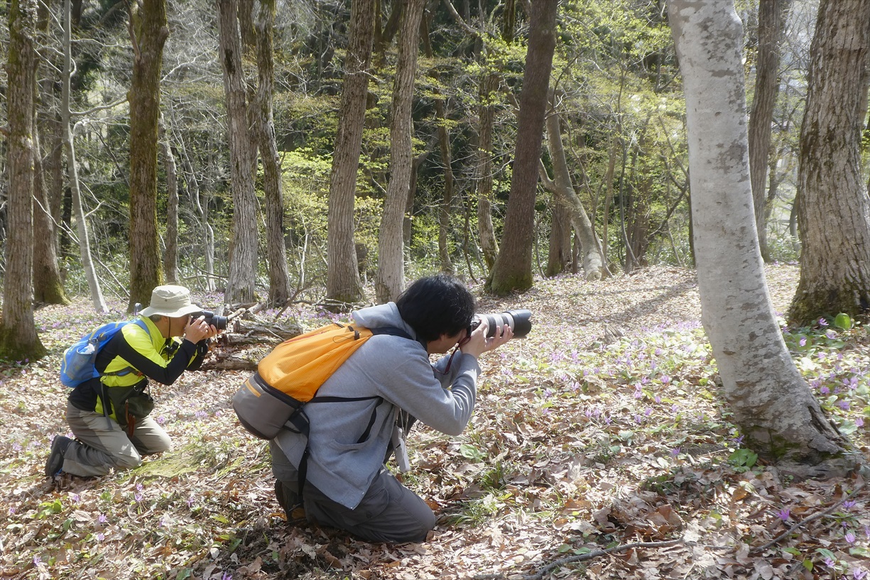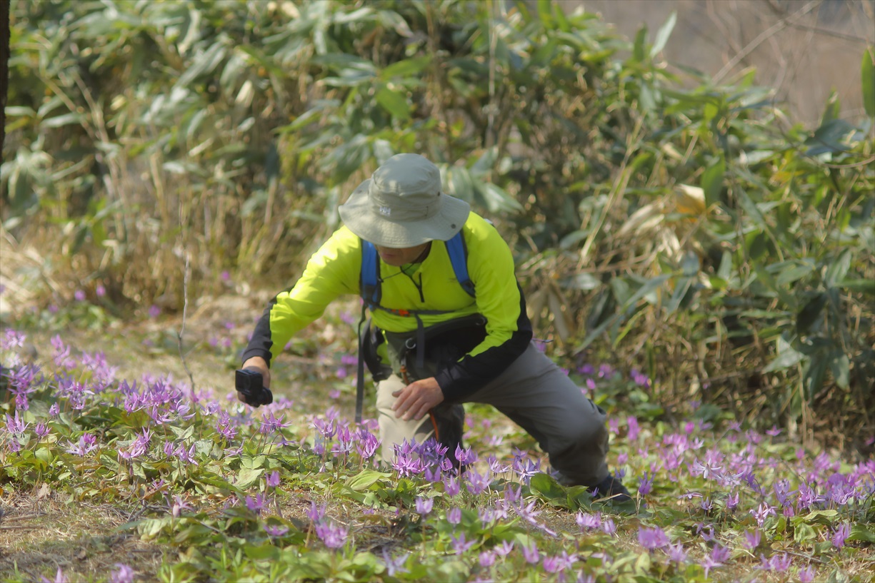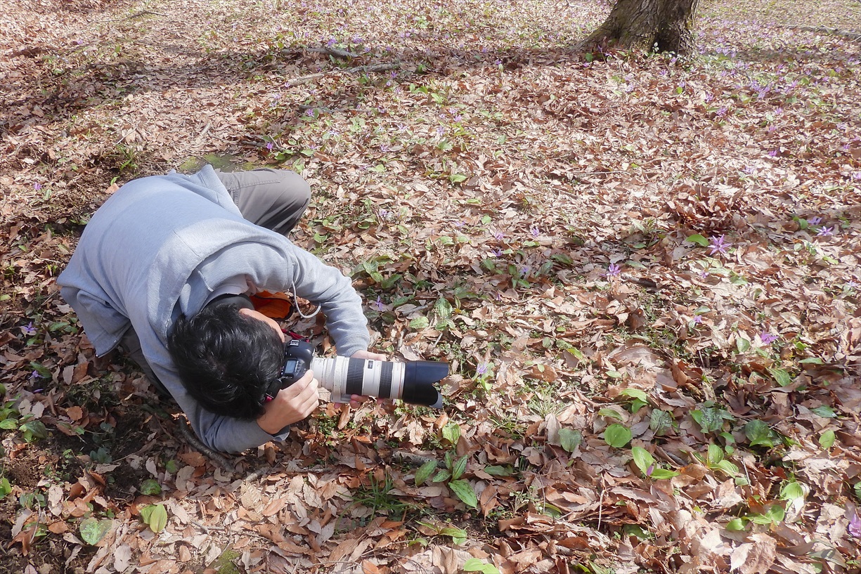 | カタクリを踏まないよう気をつけて撮影中の管理人 | ||||