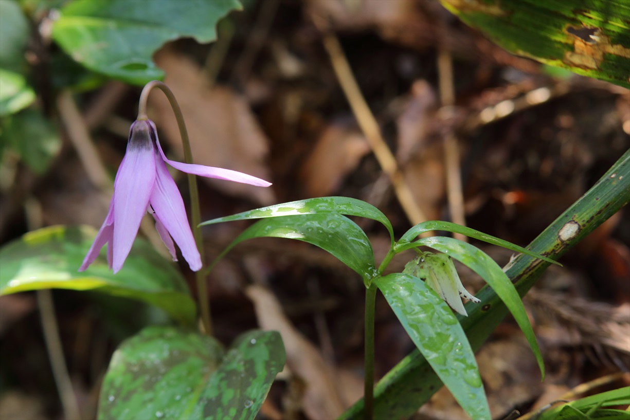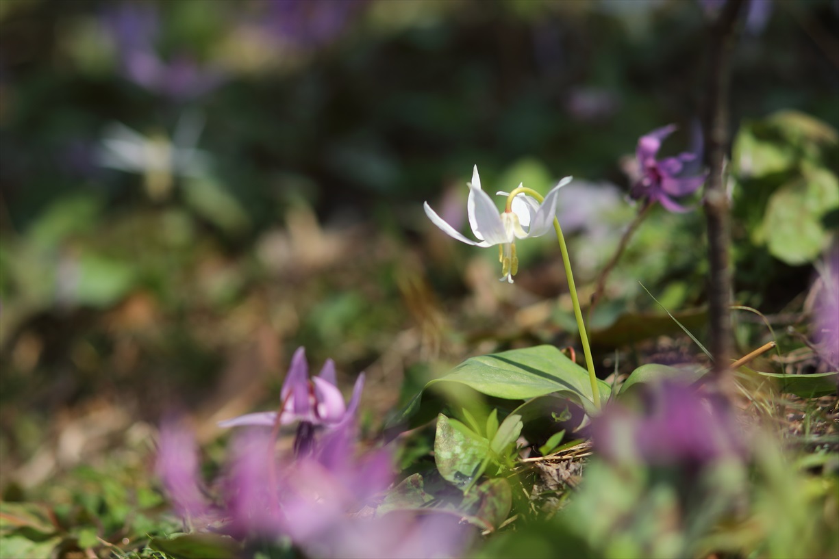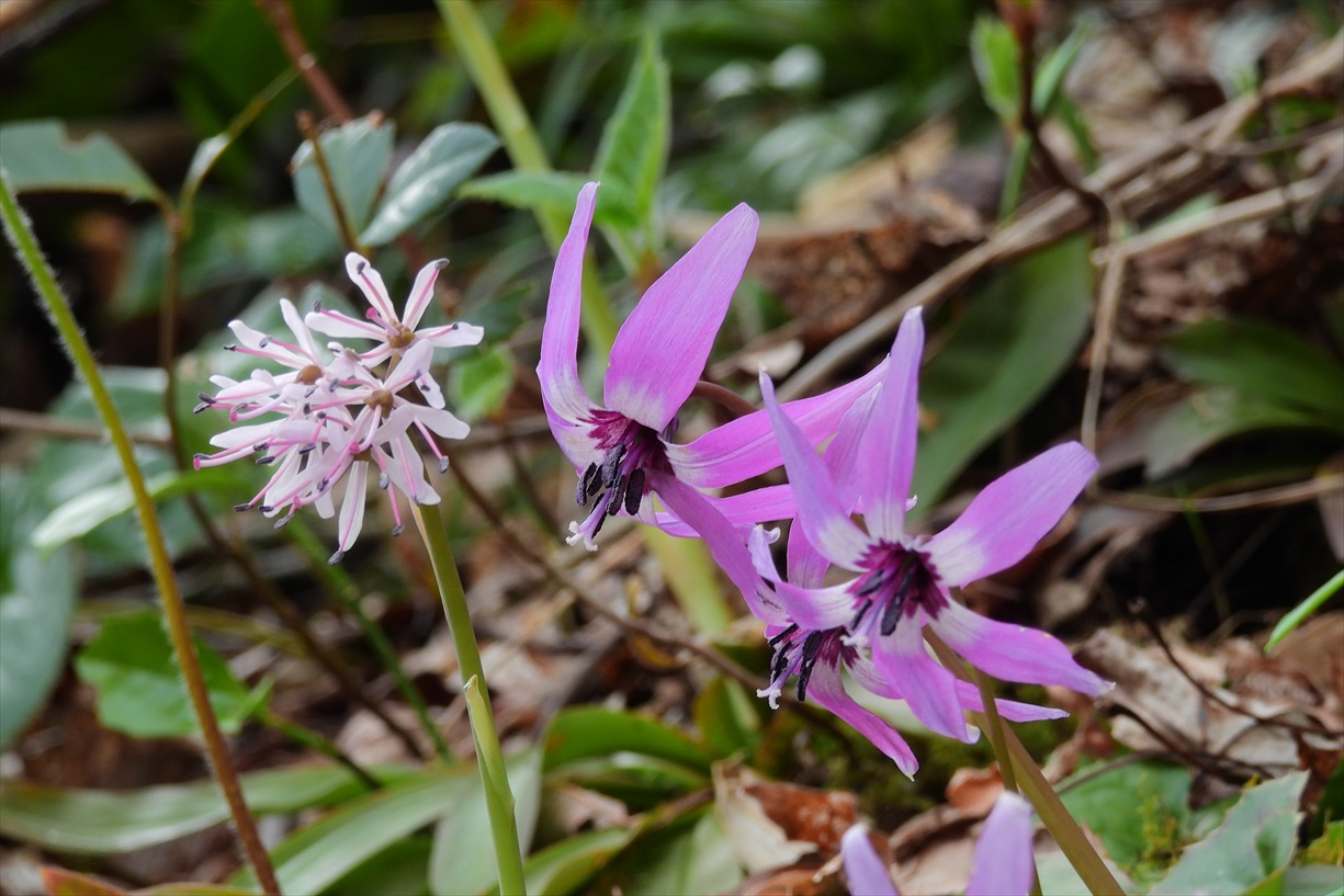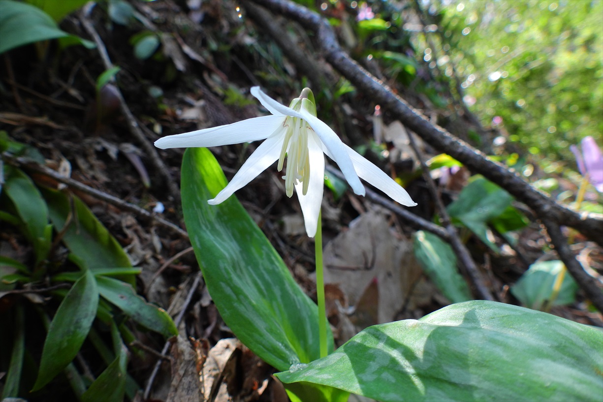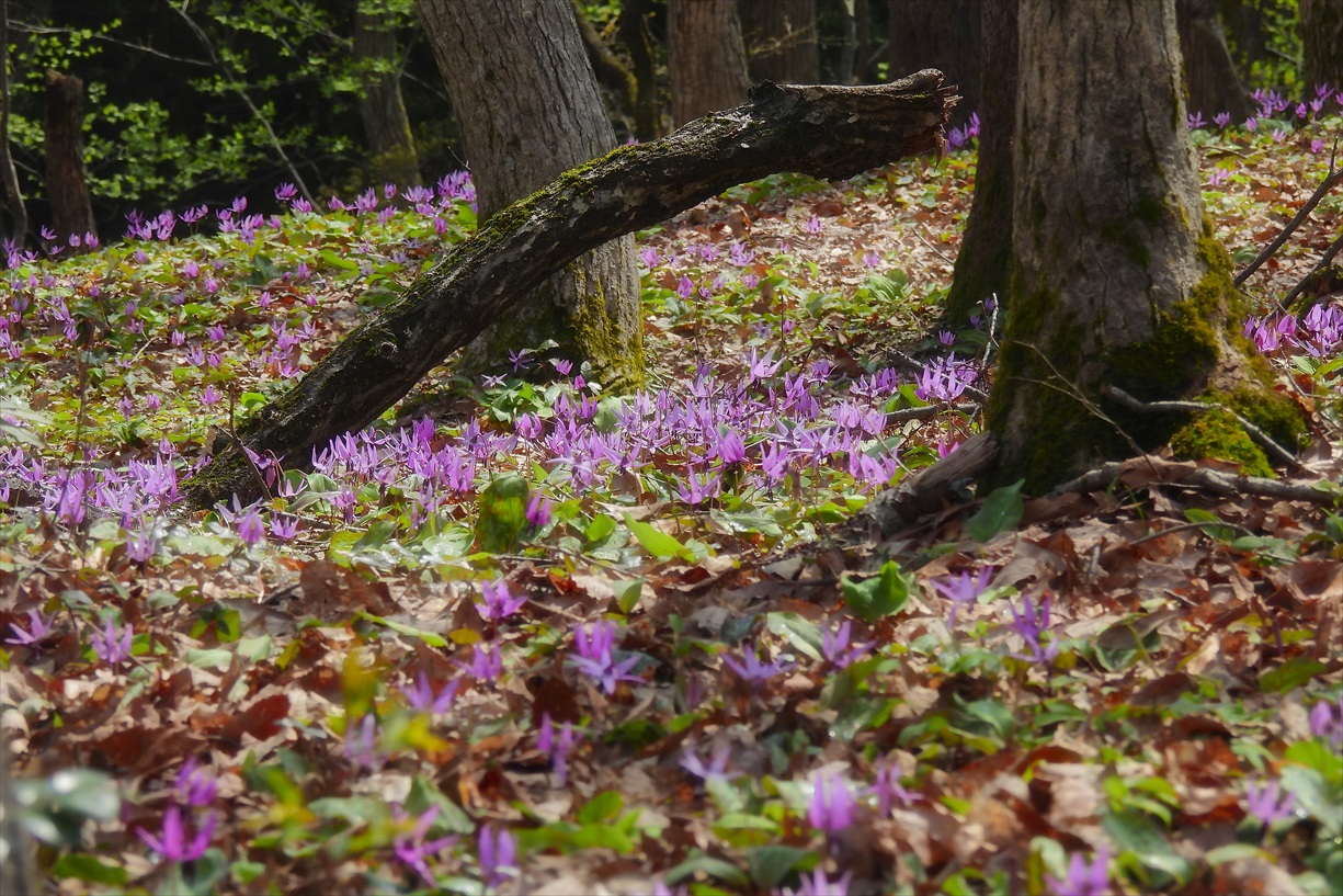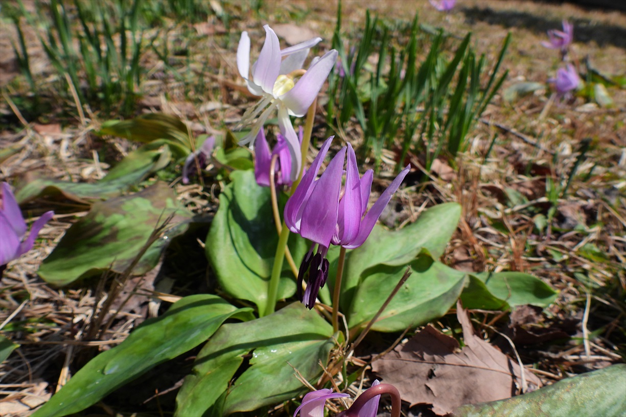 | カタクリを踏まないよう気をつけて撮影中の管理人 | ||||