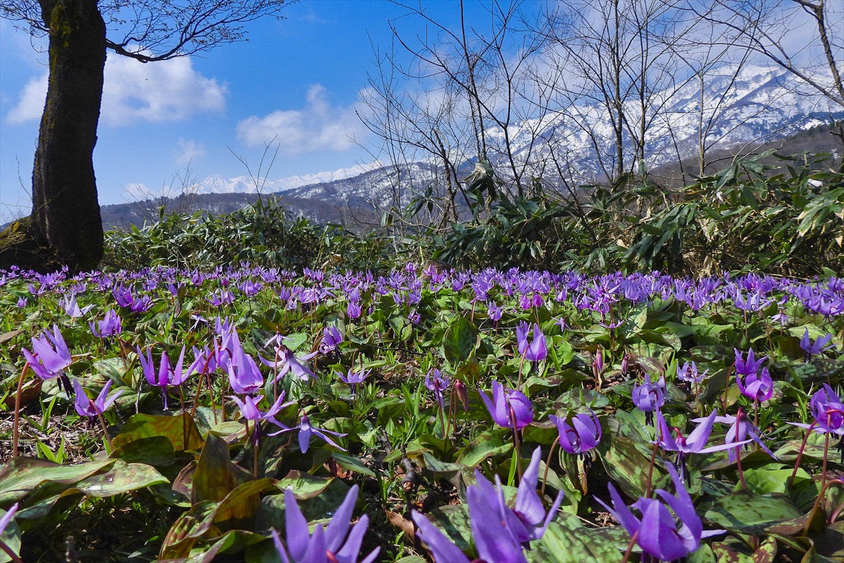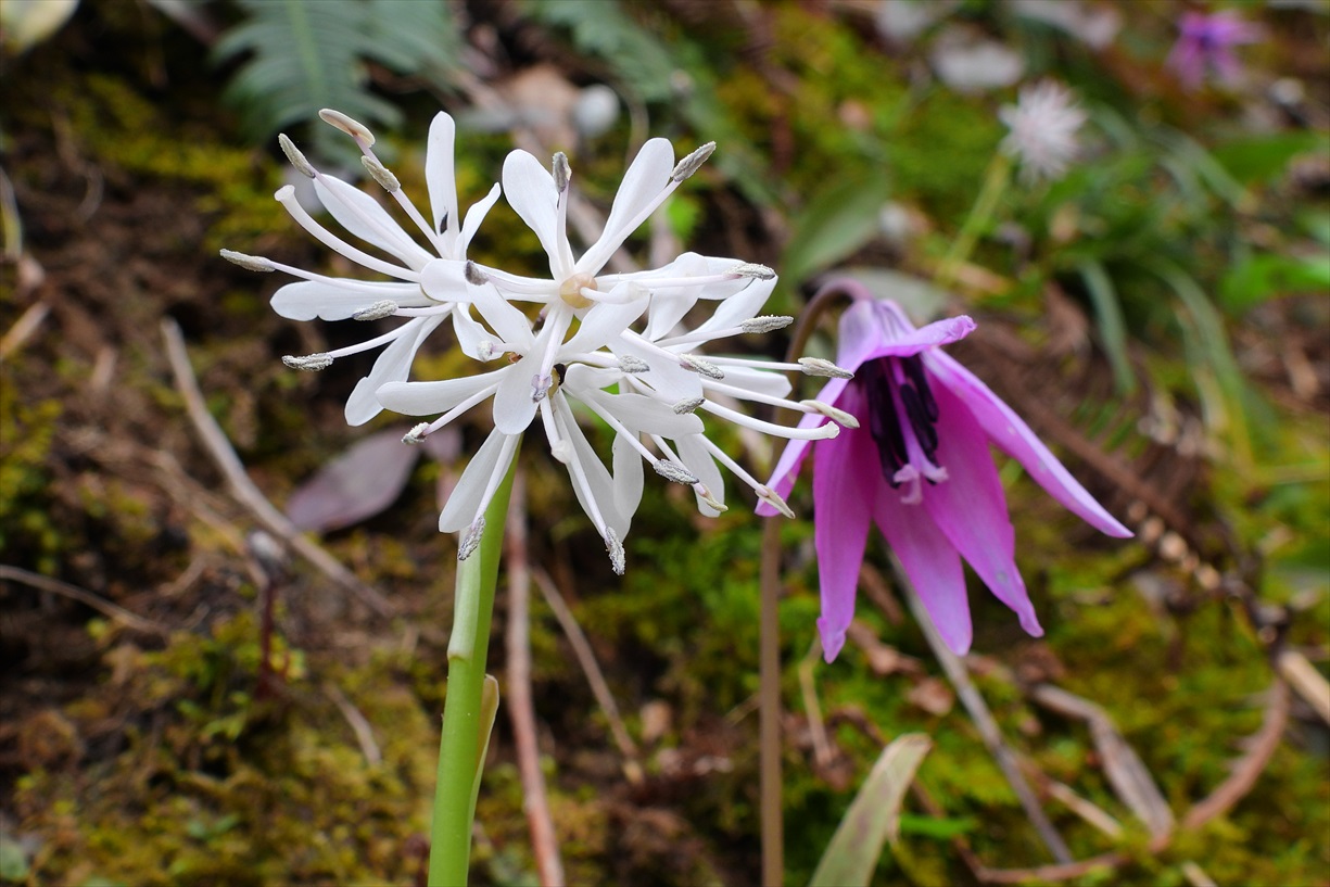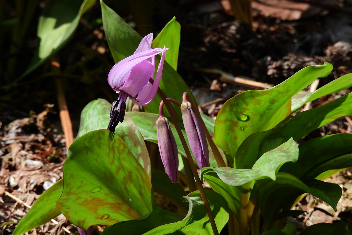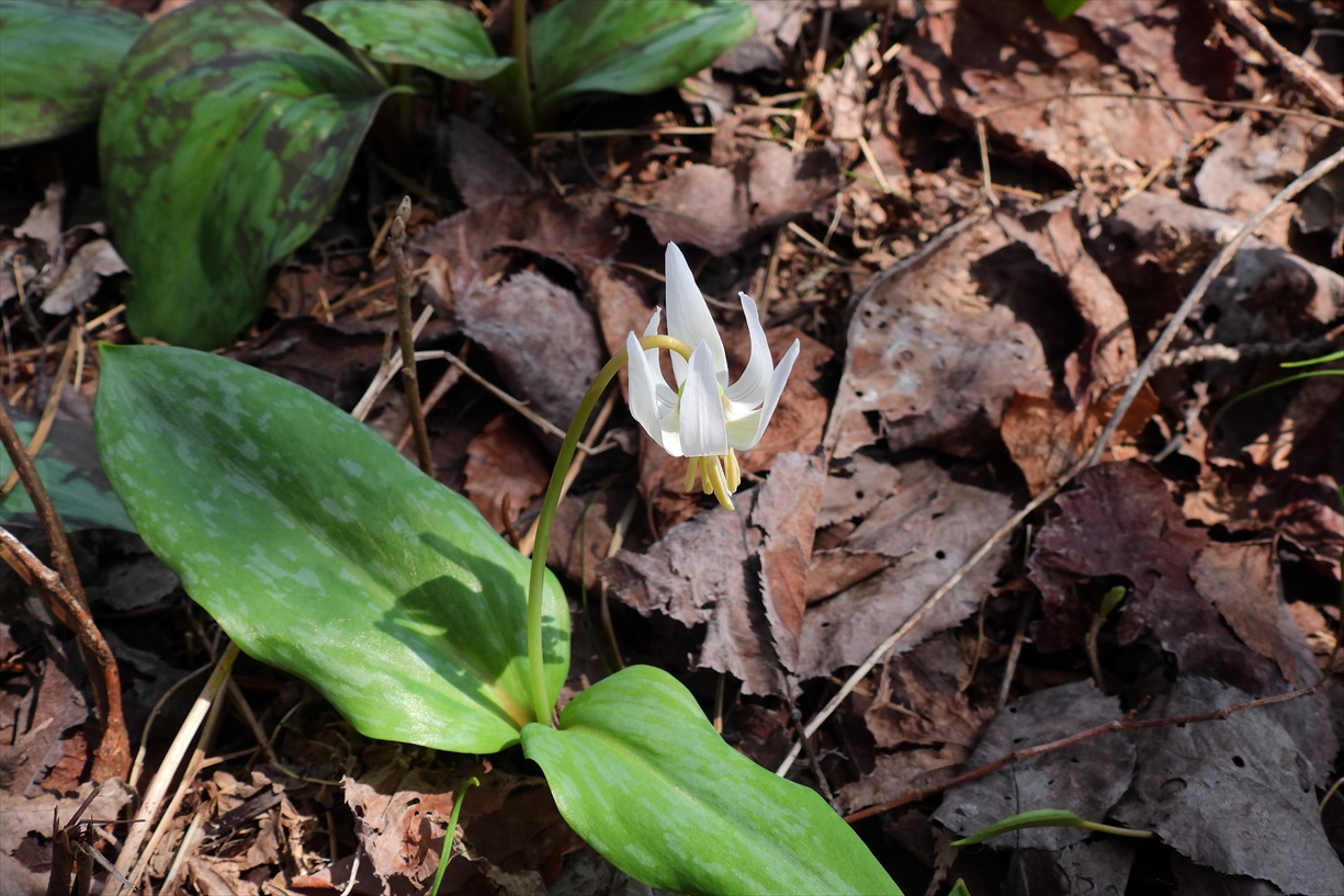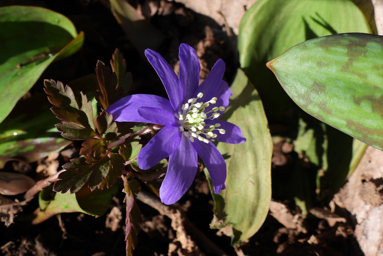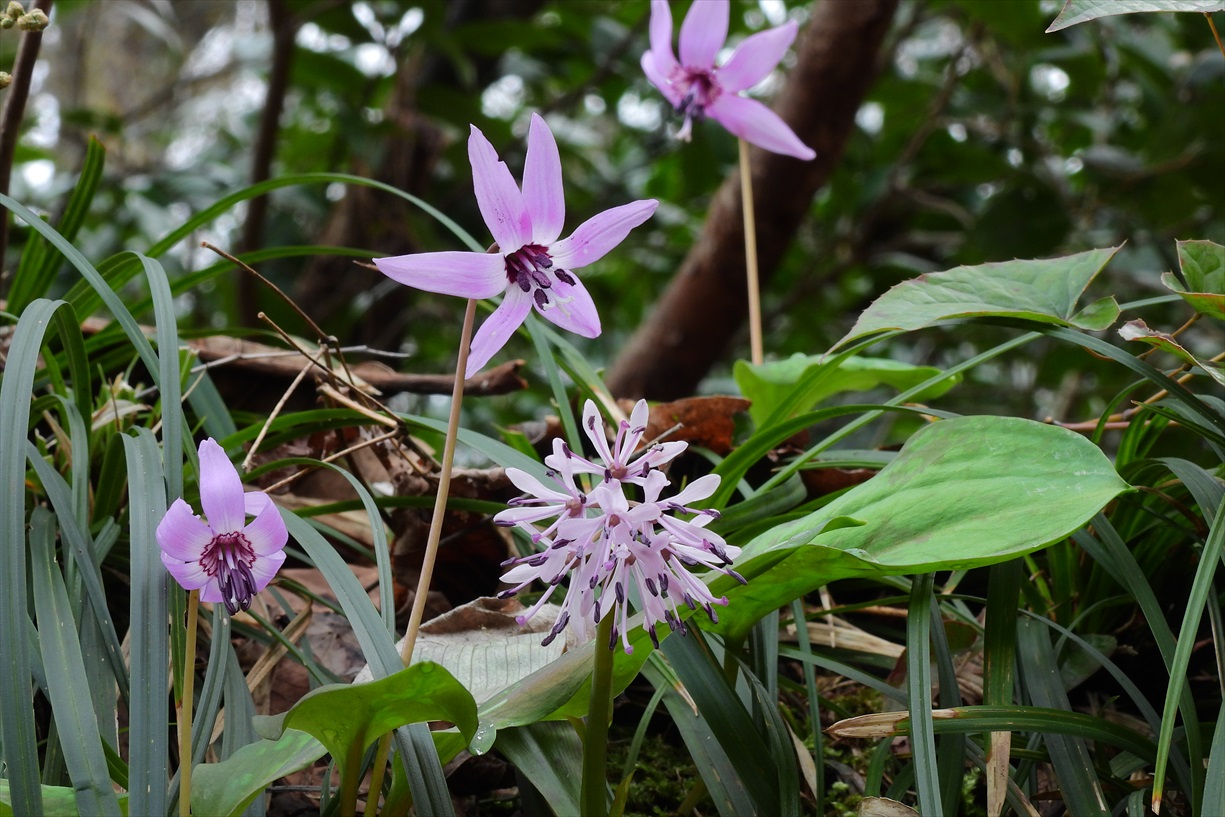| カタクリを踏まないよう気をつけて撮影中の管理人 | ||||