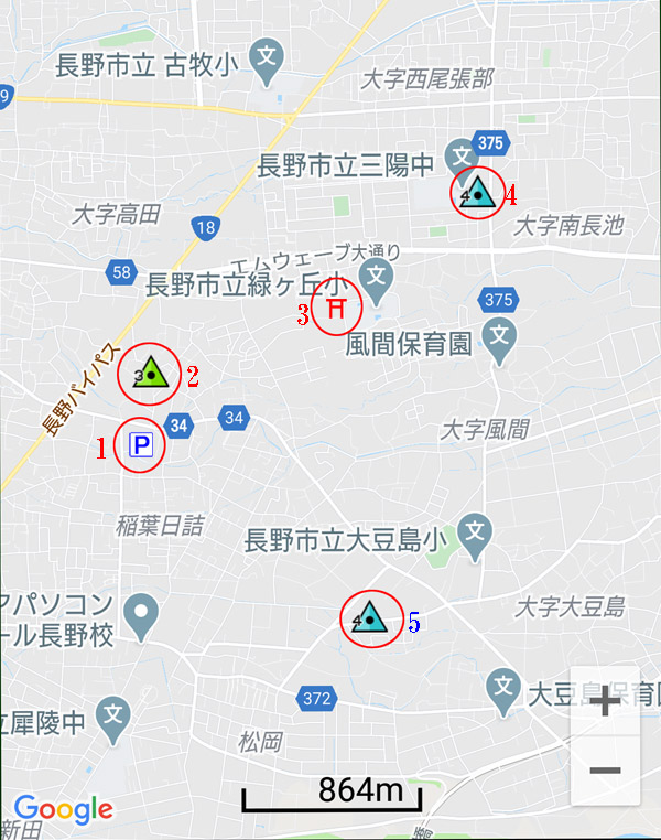 | MAP数字3番の神社へむけて街中歩き | ||||