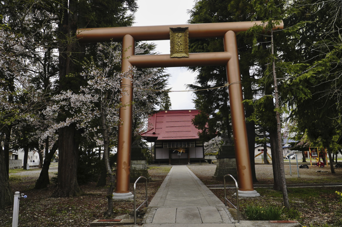 | 三角点MAP3番/伊勢社 友達から聞いていた珍しい色の鳥居(当時見せてもらった写真はもっと金色だったような)が建つ神社 |