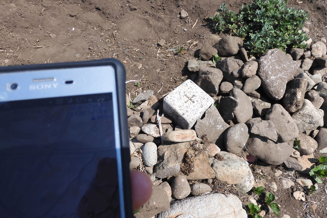 | 三角点MAP4番/4等三角点 あと数年も経てば畑の石に埋もれているかも |