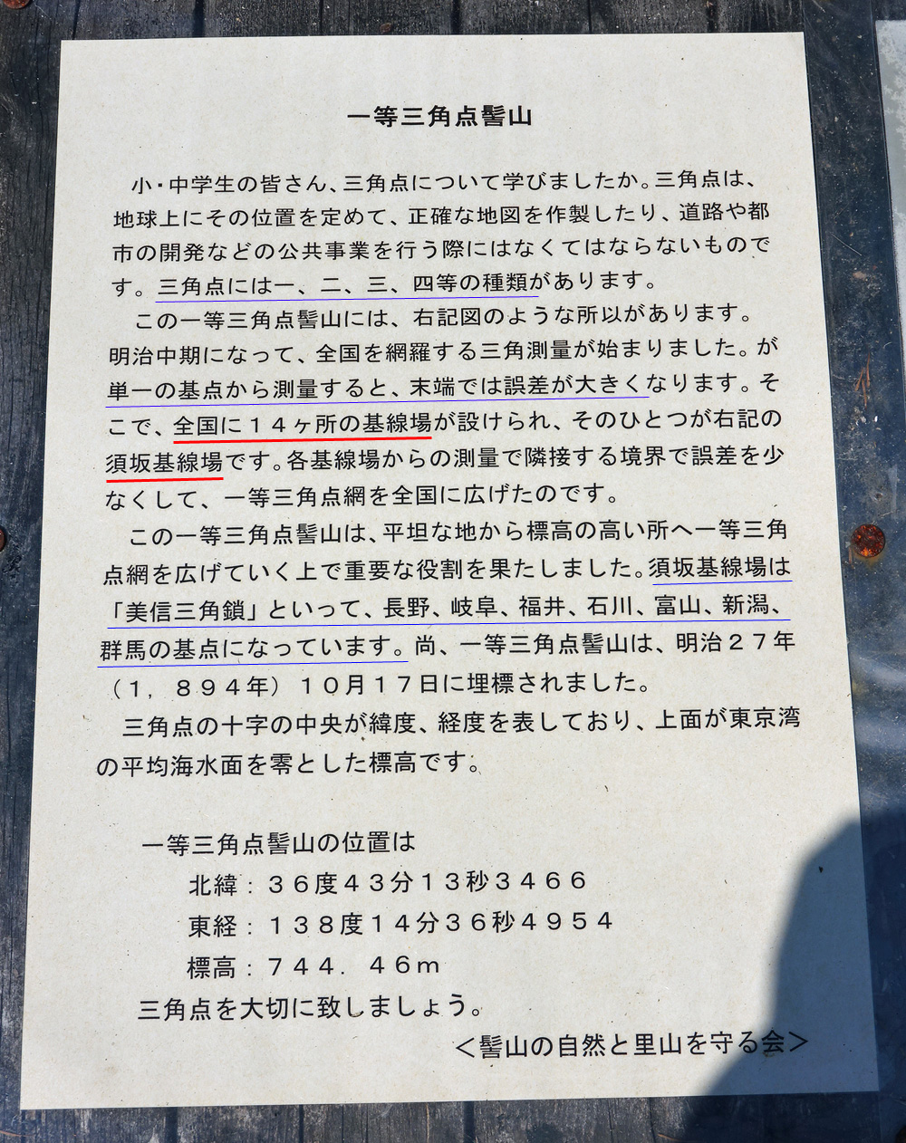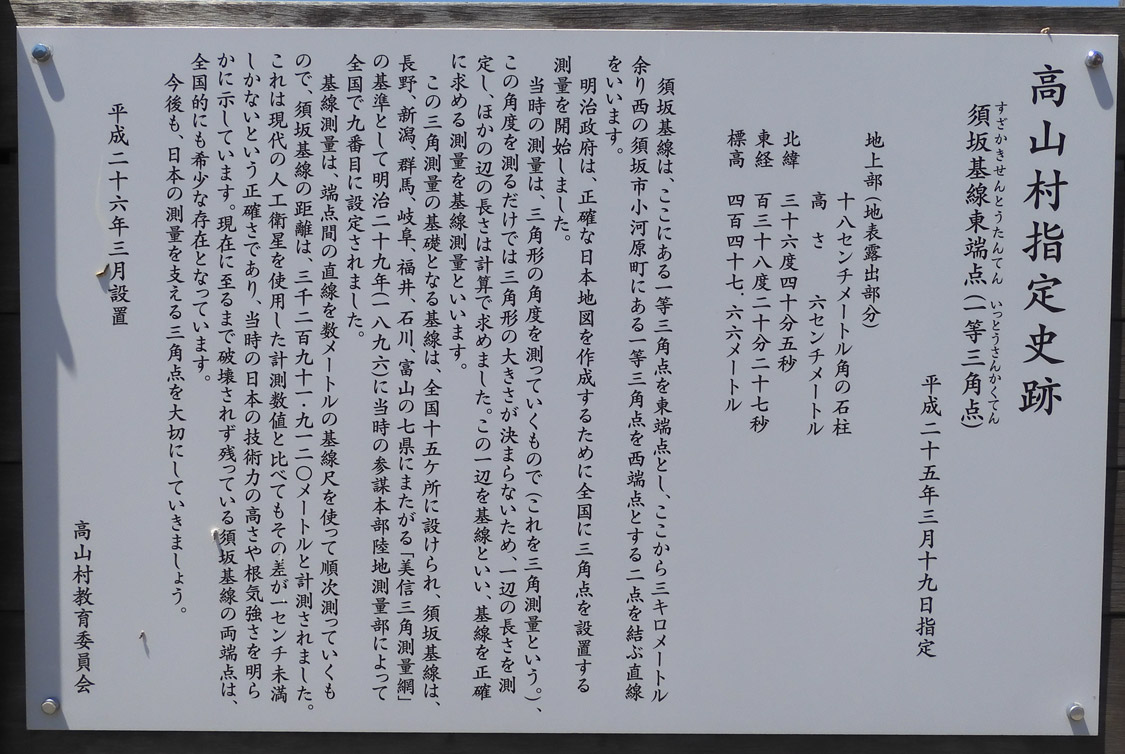 | 三角点&須坂基線場の説明板(髻山山頂にて) | ||||