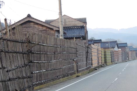 | 細い真竹で作る「間垣」は、厳しい冬の海風から家屋を守る能登特有の垣根/ぶらり能登より抜粋 | ||||