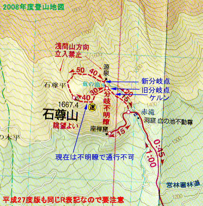 旧分岐点と勘違いして、右回りで第二源泉方面へ登り込んでしまうルートミスを犯す! |