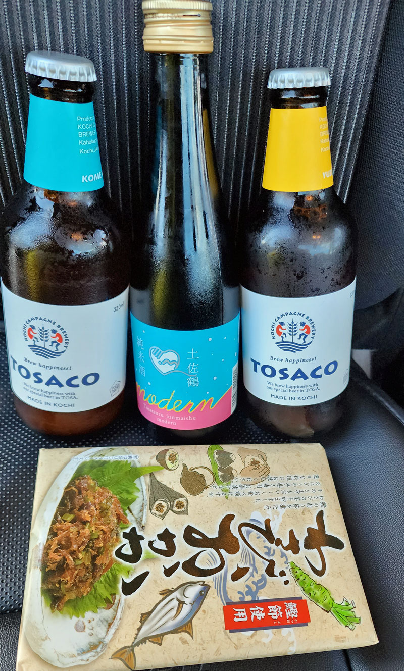 | 車中宴会用に地ビール&日本酒ゲット・宴会用つまみはコンビニで調達 | ||||