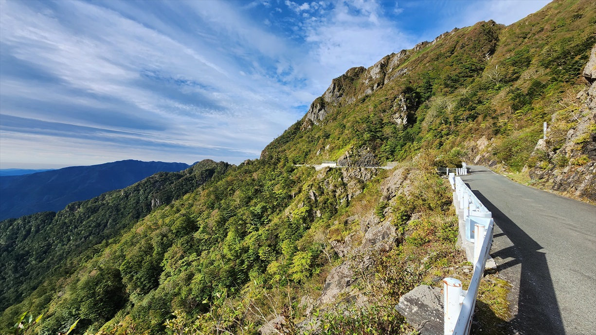 | 寒風山トンネル手前からここまでの林道も手強いクネクネ道だった (ノД`) | ||||