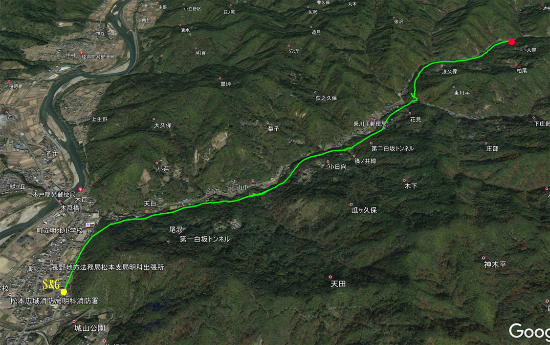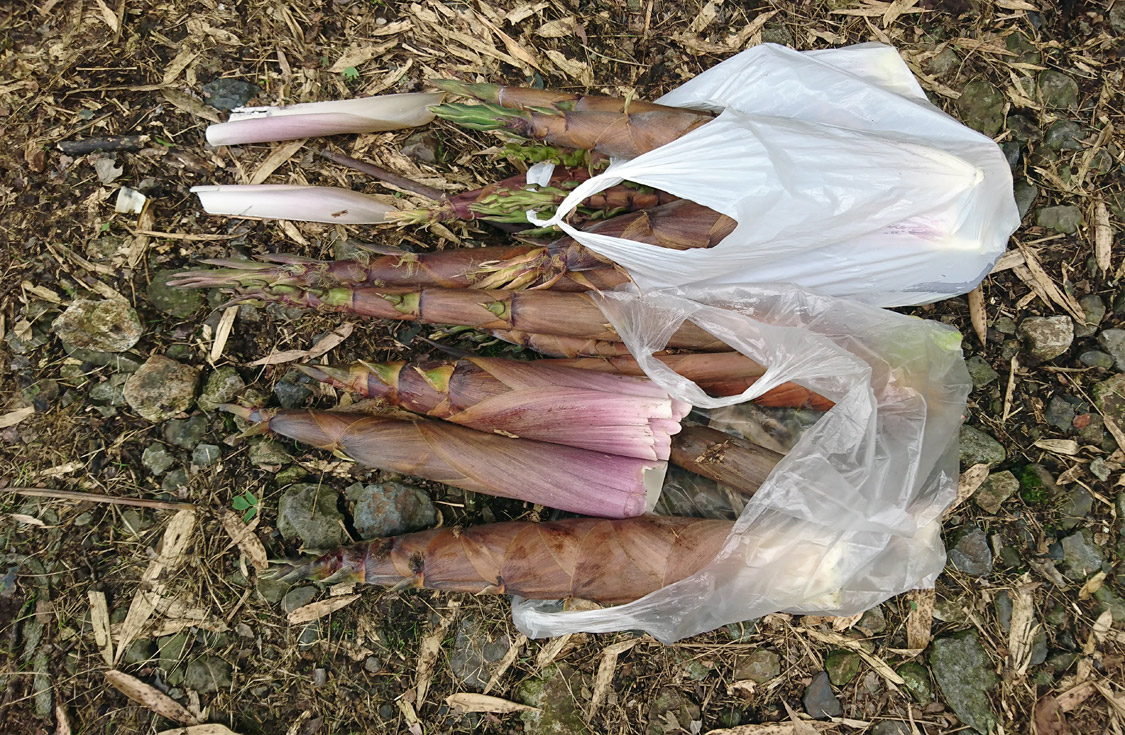 | 長野発 9:40 〜 コンビニ立ち寄り 〜駐車場着 10:50 駐車場発 11:00 〜 遊歩道終点着 13:00 〜 駐車場着 14:47 (往復のタケノコ狩り&昼食時間含)(トイレは上図参照) |
