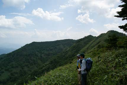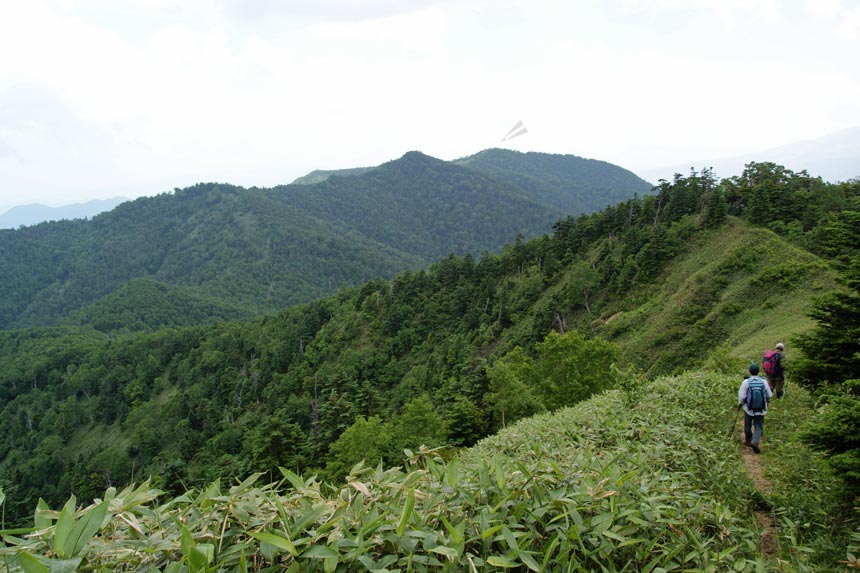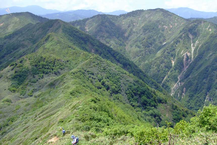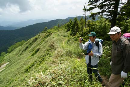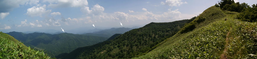 白砂山発 11:30 〜 八間山分岐点 12:36-52 〜 中尾根の頭 13:09