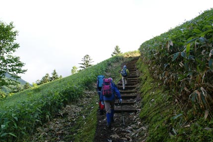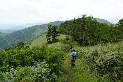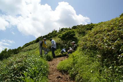 〜 イカ岩の頭 15:14 〜 こまくさ園 15:50-57 〜 野反峠休憩舎・八間山登山口着 16:01