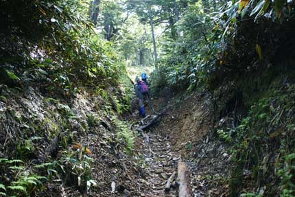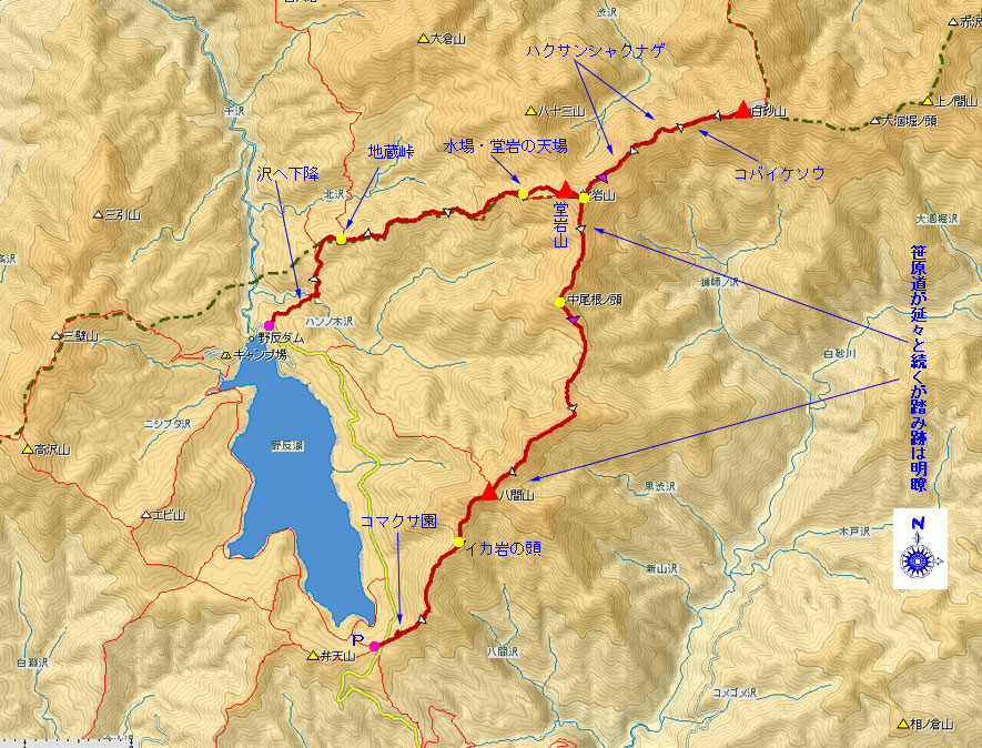 白砂山登山口発 6:38 〜 地蔵峠 7:18 〜 水場・堂岩の天場 8:32-48 〜 堂岩山 9:17
