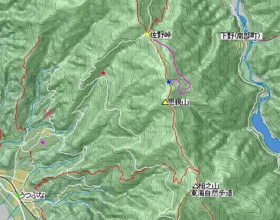 クリックすると「思親山」付近の広域地図を見ることが出来ます。マップコード 483-808-236(佐野峠) |