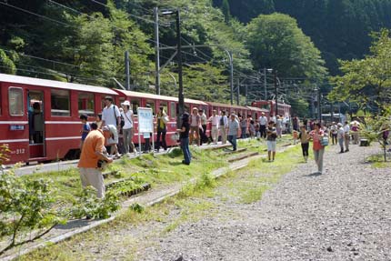 | 土砂崩落の危険で一部区間バス代行運行 | アプトいちしろ駅/ミニ列車にアプト機関車を連結 | |||