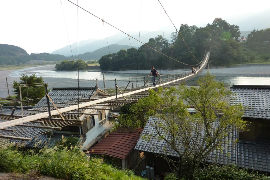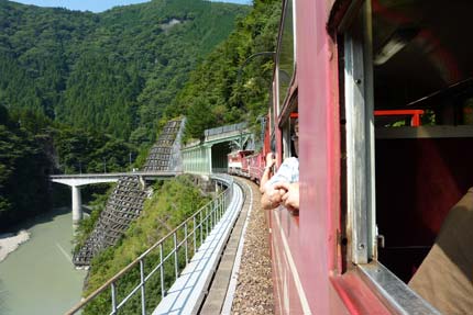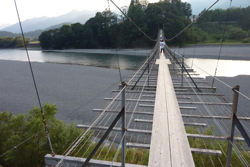 | R77の頭上に架かる川根町塩郷の吊り橋「恋金橋」 | ||||