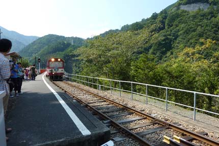 | 1000分の90という急勾配をアプト機関車が押し上げる | 奥大井湖上駅 | |||