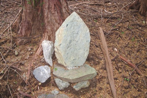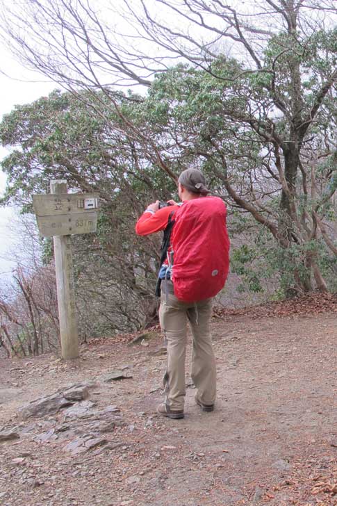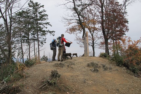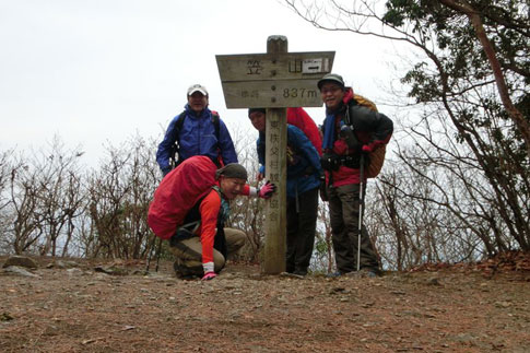 笠山神社で休憩後、笠山標柱まで戻って記念撮影 |