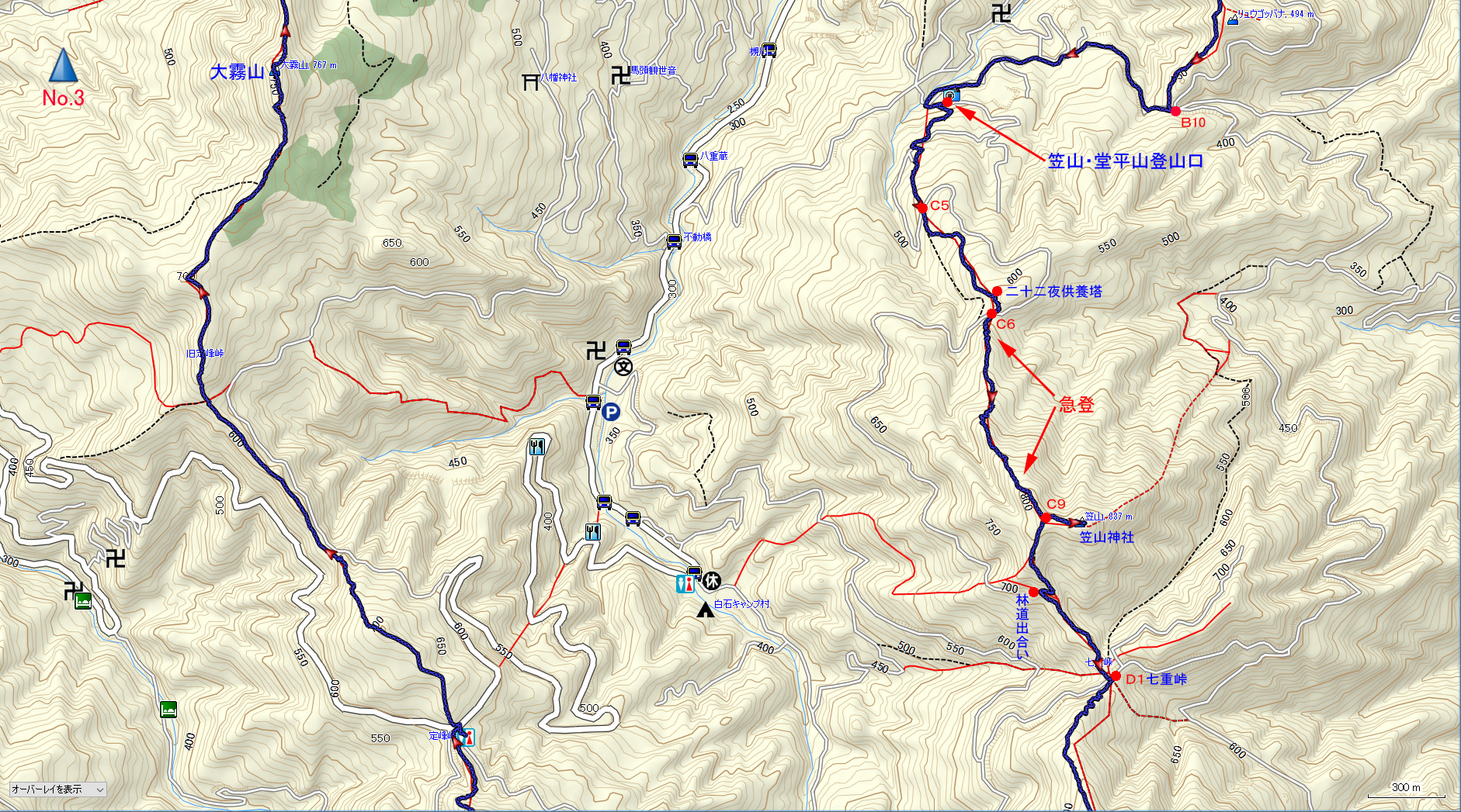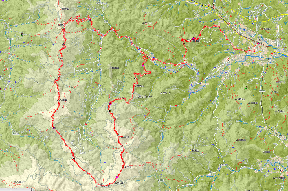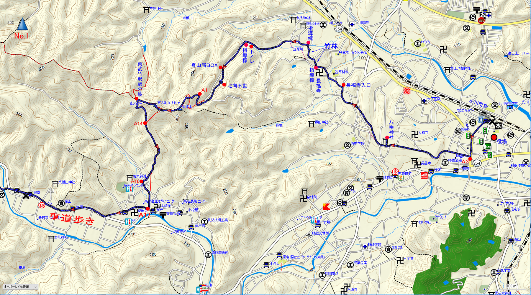 小川町駅標高/91M 標高差/785M 上り累積/2247M 総歩行距離/39954M |