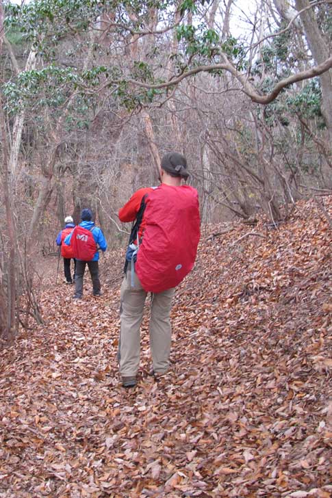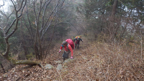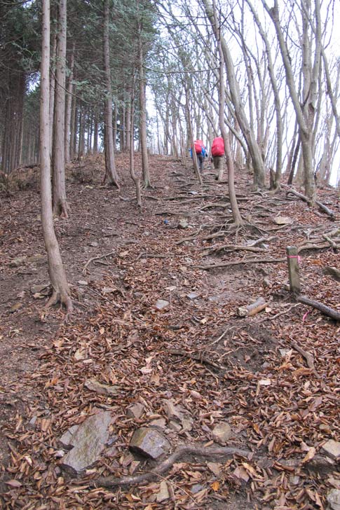 粥新田峠に向けて尾根筋を歩く |