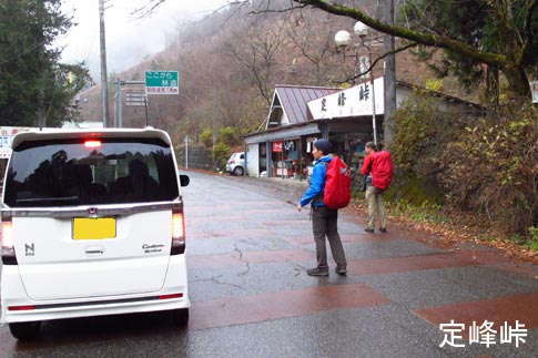 温かい飲み物でリフレッシュして定峰峠を出発 |