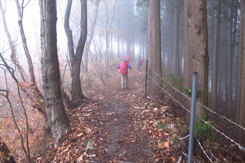 名前(大霧山)の如く霧に包まれる登山道 |
