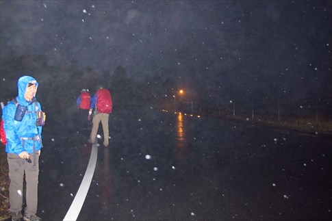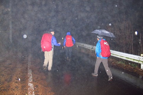 本降りの雨と暗闇を心配して粥新田峠で二回目のサポートをしてくれたMIZUOさん(感謝) |
