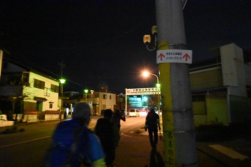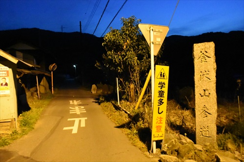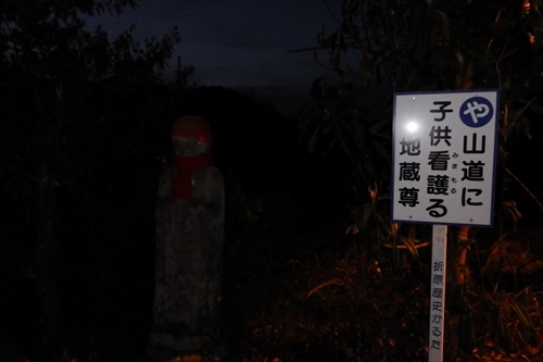 地蔵尊と釜伏山参道石柱 pm18:45 主要道に出たがまだまだ先は長い! |