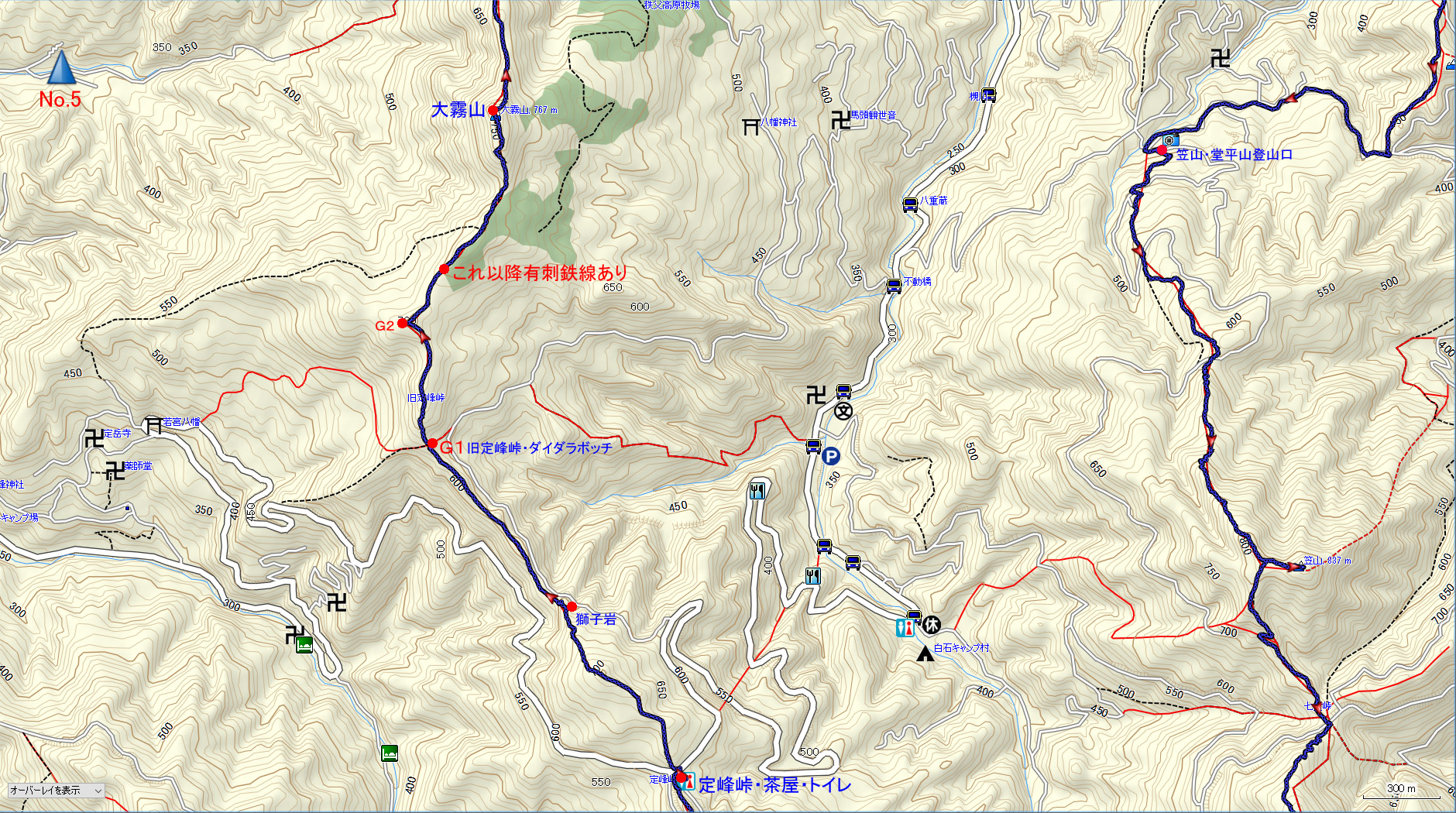 地図でわかるように定峰峠から大霧山はアップダウンが連続するのでマイペースで歩きたい |