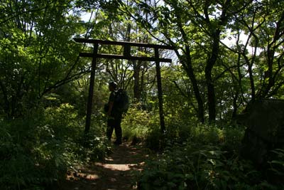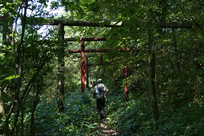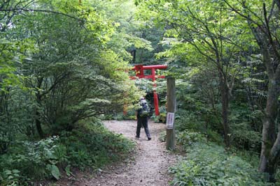 赤い鳥居(ヤセオネ峠分岐点)にでる。