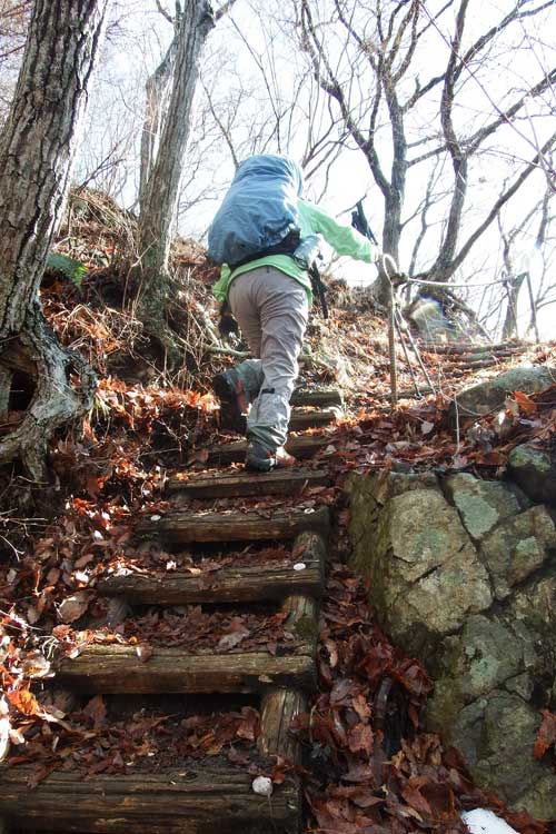 | 再度の木階段急登に爺はウンザリだが経石まで頑張れば山頂が近い | ||||