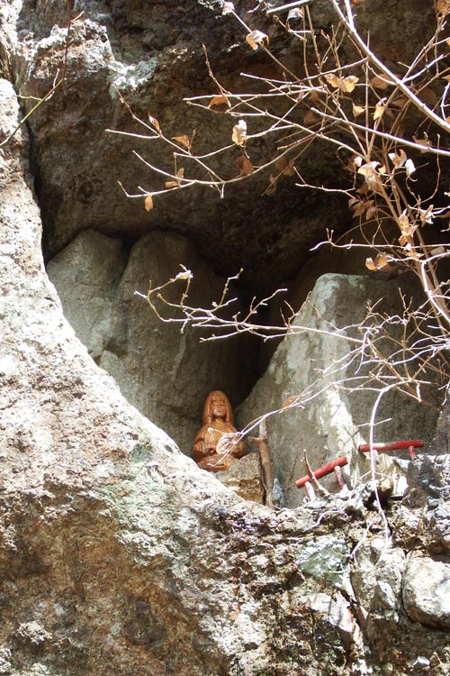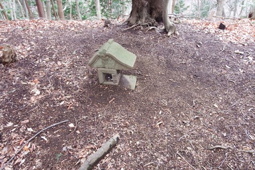 | 物思いにふけるTanmaさんかな? | 小さな石祠 男坂・女坂分岐点 上 |