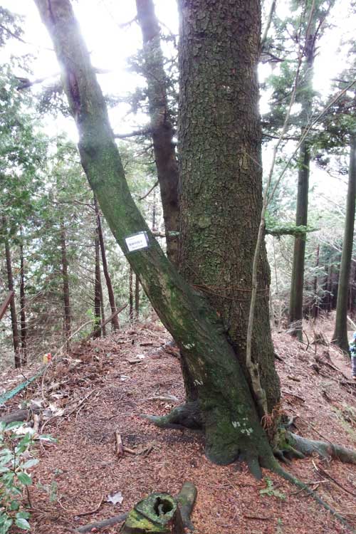 | 転倒に気をつけて慎重に下る | 同じ根元から種類の違う木が成長 異種格闘木 |