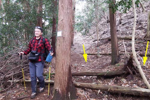| 時間があったら発句石までいきましょう | 西山を守る会作成の紙指導標が随所に貼られている | |||