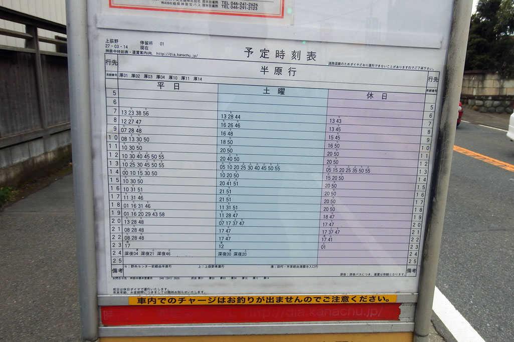 | 上萩野バス停時刻表 ふれあいの村野外センター前バス停で下車 ・運賃 290円 |