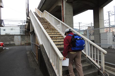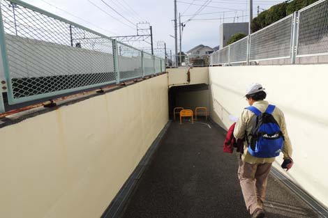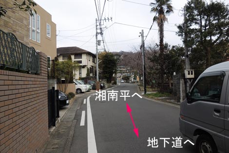 | 地下道入口拡大図 情報不足で地下道(当初は踏切と思い込んでいたため)がわからず、今回は跨線橋経由で湘南平へ向かう |