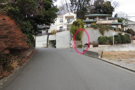 | 右上写真の○囲み地点指導標 | 今暫く住宅街を歩く | |||